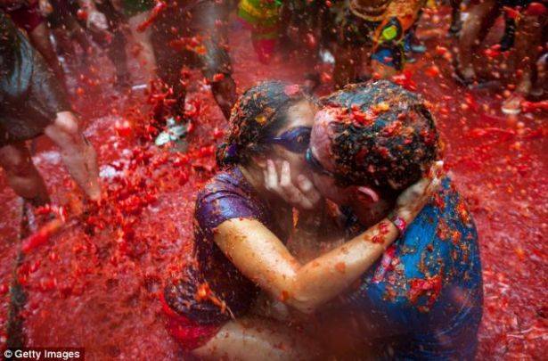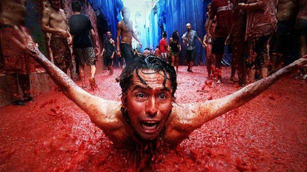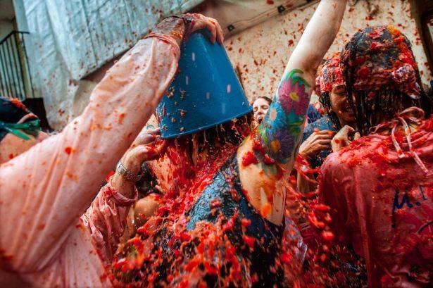 وقالت الاميركية جيسيكا سيمز البالغة 27 عاما "رمي الطماطم بعد سحقها امر جنوني. كانت السماء تمطر طماطم".