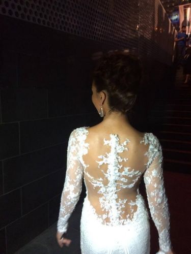 وقد لفتتنا أيضاً الممثلة سيرين عبد النور في حفل Murex d'Or 2014 في ثوبها الأحمر الصاخب من تصميم الشاب أنطوان القارح، وأضافت عقداً وقرطين من مجوهرات Yessayan واختارت تسريحة شعر على شكل الكعكة لدى صالون "ميشال وكوليت".