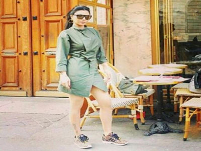 وهبي كانت ترتدي ثوباً “زيتي” اللون من مجموعة isabel marantلخريف 2014 مع حذاء رياضي بطبعة النمر من adidas، وأثارت الصورة اعجاب جمهورها خاصة على “فيسبوك”.