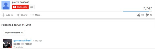 ومن خلال قناته الخاصة على YouTube، نشر حشَّاش فيديو أغنيته الجديدة التي يقول في إحدى عباراتها: “على أ*** الرحباني الأول والتاني”، فما كان من غسان الرحباني إلا أن كتب تعليقاً جاء فيه: “بدّي *** ربَّك”!