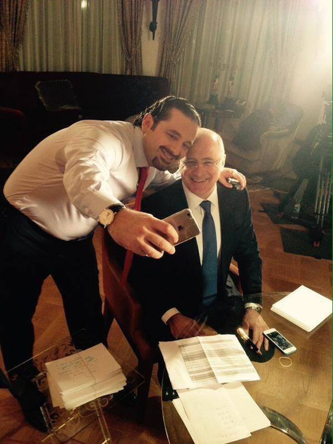 نشر برنامج كلام الناس عبر صفحته على "تويتر" والذي يعده الاعلامي مرسال غانم صوراً للرئيس سعد الحريري اثناء التقاته صور السلفي خلال البرنامج في باريس
