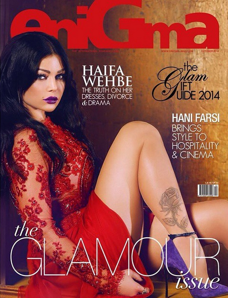 حلت النجمة اللبنانية هيفاء وهبي على غلاف مجلة "Enigma" المصرية في عددها لشهر كانون الأول الجاري، حيث اختارت لإطلالتها فستان أحمر مثير من تصميم المصمم اللبناني توفيق حطب.