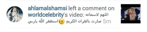 فعلقت أحلام على هذه الفيديو عبر تويتر قائلة: "اللهم لا شماتة صارت بالقرآن الكريم إستغفر الله يا ربي".