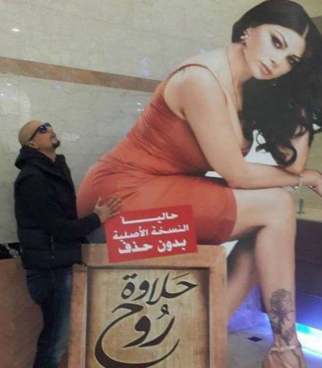 نشر الممثل المصري أحمد الفيشاوي صورةً على فايسبوك، تجمعه بالمجسم الإعلاني لفيلم "حلاوة روح" للنجمة هيفاء وهبي.