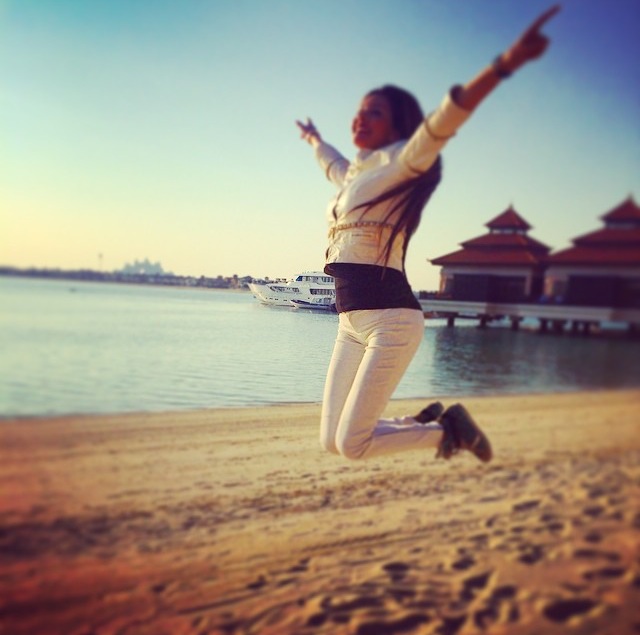 وظهرت فرنجية برفقة صديقتها وهما تستمتعان بأشعة الشمس، وعلّقت قائلة: "سعيدة أنكِ أتيت إلى دبي. أراكِ قريباً في باريس".