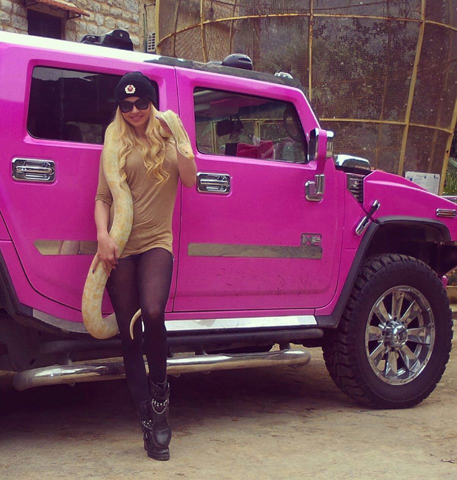 نشرت الفنانة اللبنانية ميريام كلينك صورة لها عبر حسابها الرسمي على الفايسبوك، وهي تحمل أفعى ضخمة صفراء اللون.