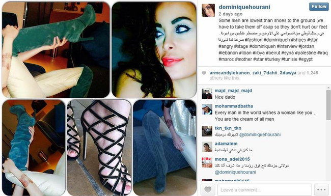 نشرت الفنانة اللبنانية دومينيك حوراني صورة، عر حسابها الرسمي لى موقع "إنستغرام" لمجموعة من أحذيتها مرفقة بعبارة عليها: