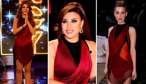 وسبقتهما في ارتدائه "أمبر هيرد" صديقة الممثل العالمي جوني ديب. لكن نجوى كرم غيرت قليلاً بالفستان وارتدت عليه حذاء يغطي رجلها باللون الأسود، كما كان الفنانة اللبنانية نانسي عجرم قد ارتدته مسبقاً.