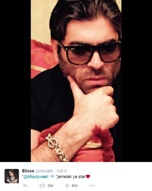 وعاودت إليسا نشر صورة الكفوري وأرفقتها بتعليق: “جمالك يا ستار”، واكتفى الكفوري بالـ Retweet، ولم يرد على إليسا.