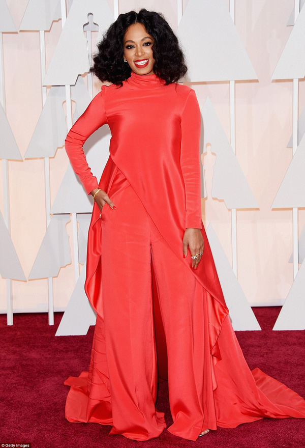 - صولانج نولز التي عوّدتنا على أناقتها بدت غريبة في ثوب أحمر من الكريب من تصميم Christian Siriano.