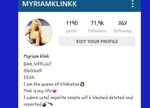 نشرت عارضة الازياء اللبنانية ميريام كلينك على صفحتها الرسمية على فيسبوك صورة عن حسابها الرسمي على انستغرام.