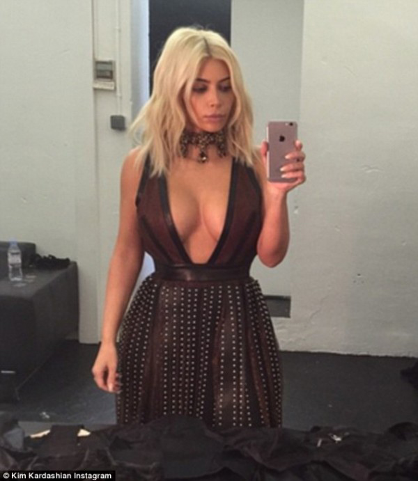 وكشفت كيم عن صدرها بصور جريئة معلقة: " I loved this shoot for Elle France Magazine on stands tomorrow!