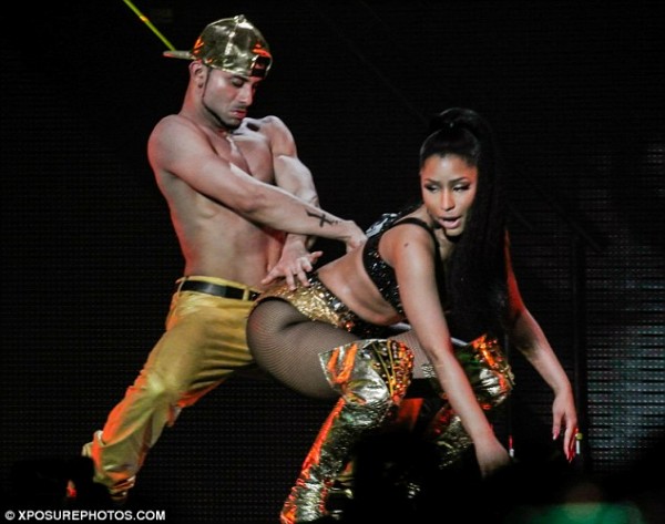 نيكي اعتمدت مجموعة من الإطلالات الفاضحة واستعرضت مؤخرتها على المسرح ، كما ظهرت بما يشبه الملابس الداخلية أمام جمهورها .