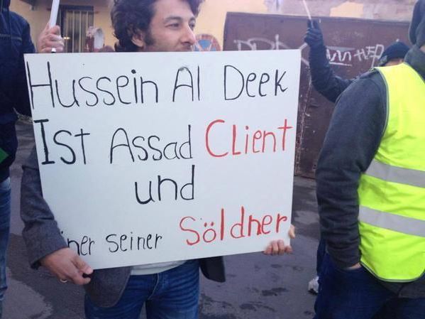وكانت زيارة الديك إلى برلين قد سبقتها حملة منظّمة ضده ، حيث دعا معارضون سوريون إلى تنظيم اعتصام أمام الصّالة التي سيغنّي فيها، ويبدو أن الديك لم يعبء بالاعتصام فقام بتوجيه تحيّة إلى الرئيس السوري بشار الأسد وغنّى له أغنية قبل أن يتحوّل الحفل إلى ساحة عراك.