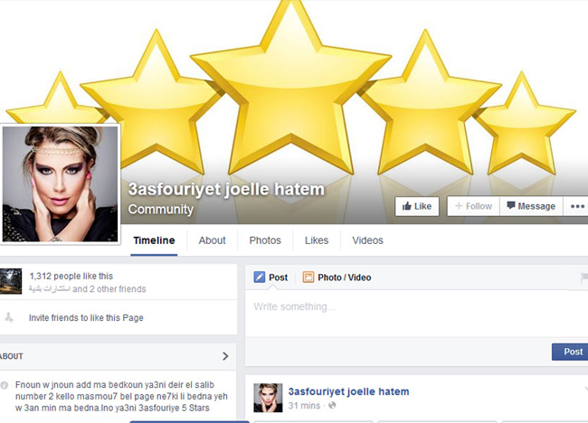 ورحبت حاتم بكل مجنون يشبهها،كما قالت، بالانضمام الى هذه الصفحة، طالبة من جمهورها دعوة أصدقائهم لابداء اعجابهم بالصفحة.