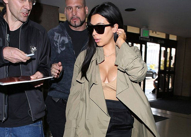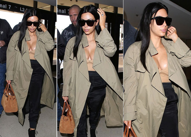التقطت صور لنجمة تلفزيون الواقع كيم كارداشيان لحظة وصولها إلى مطار لوس أنجلوس الدولي، حيث ظهرت حافية القدمين
