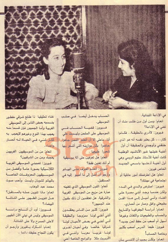 بهذه الكلمات افتتحت ‏‎ ‎الصحافية "إنعام الصغير" المقابلة الأولى التي أجرتها السيّدة فيروز في بداية حياتها ‏الفنيّة مع مجلّة "الشرق الأدنى". ‏