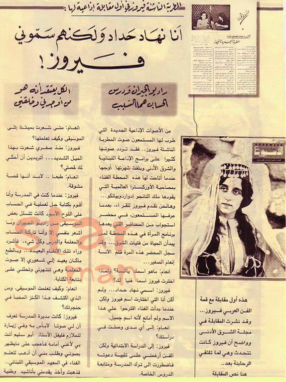 • » بالصور: "أنا نهاد حداد لكنهم سمّوني فيروز"‏