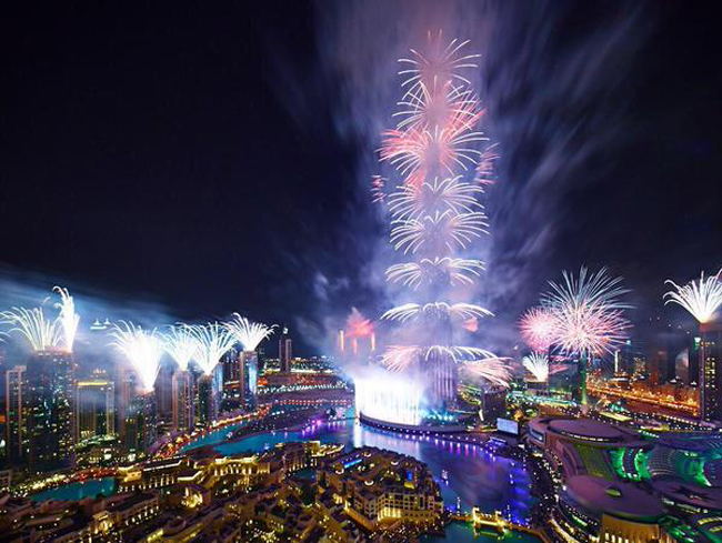إشتعلت سماء دبي مساء الاربعاء بالالعاب النارية والضوئية في برج خليفة الاعلى في العالم احتفاء بالعام الجديد 2015.
