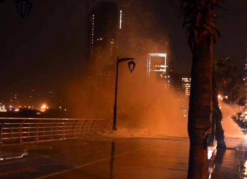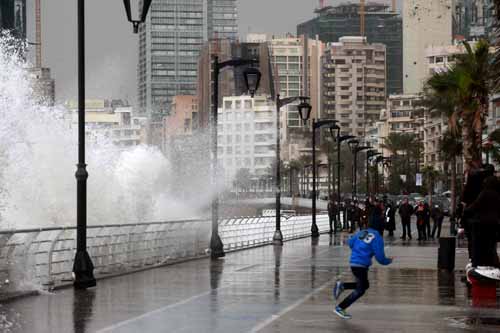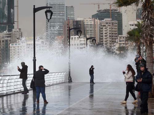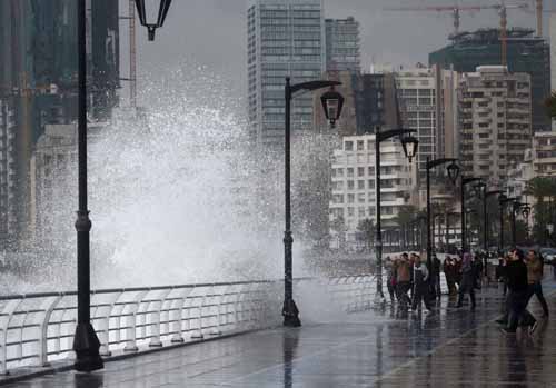 في مشهد لم يألفه اللبنانيون كثيراً، اجتاحت أمواج البحر في منطقة عين المريسة الرصيف جرّاء اشتداد العاصفة وازدياد سرعة الرياح، الأمر الذي رفع من مستوى المياه في البحر وكذلك الأمواج، فوصلت المياه إلى الطريق البحرية لتغمر السيّارات وتفاجئ المارة، الذين وجد البعض منهم في الأمواج العاتية، فرصةً للتحدي كما يظهر في الصور المرفقة.
