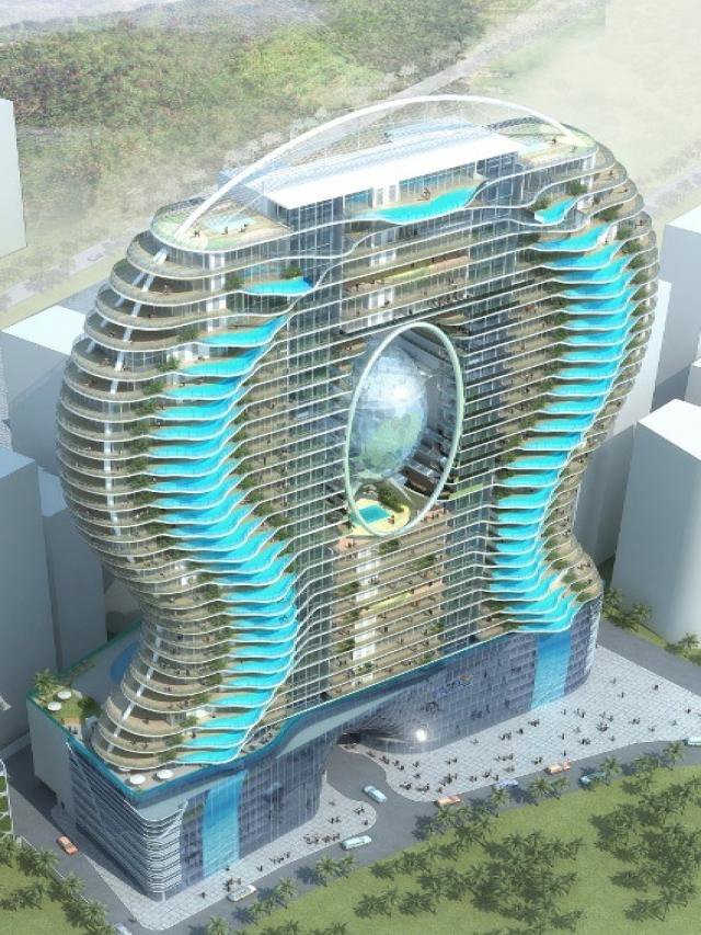 صممت شركة "James Law Cybertecture"، برجًا سكنيًا فاخرًا، في في العاصمة الهندية – مومباي، تتضمن كل شرفة من شرفاته حمام سباحة خاص.