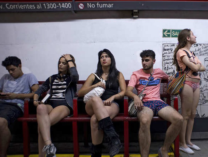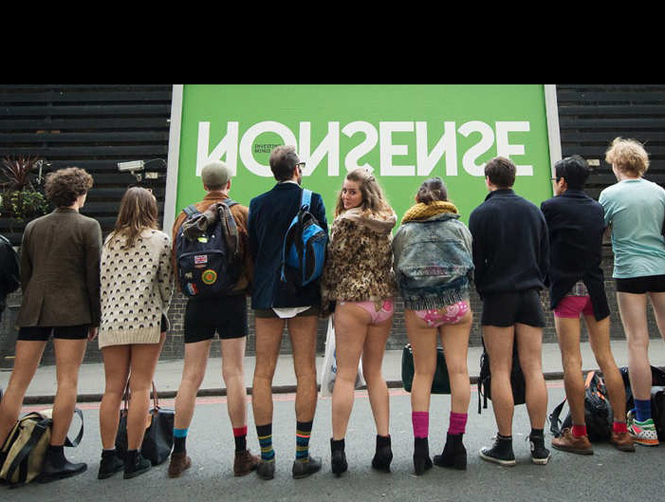 يوم بلا بناطيل بمحطات قطار المترو هي تظاهرة سنويّة أطلقتها حركة "انبروف أفريوير" Improv Everywhere في نيويورك بمشاركة سبعة أشخاص فقط عام 2002، تنامت إلى تظاهرة عالميّة تشارك فيها عشرات المدن حول العالم يرتدي فيها المشاركون كامل ملابسهم اليوميّة للعمل وتعرية الجزء السفلي من الجسم باستثناء ملابس داخليّة.