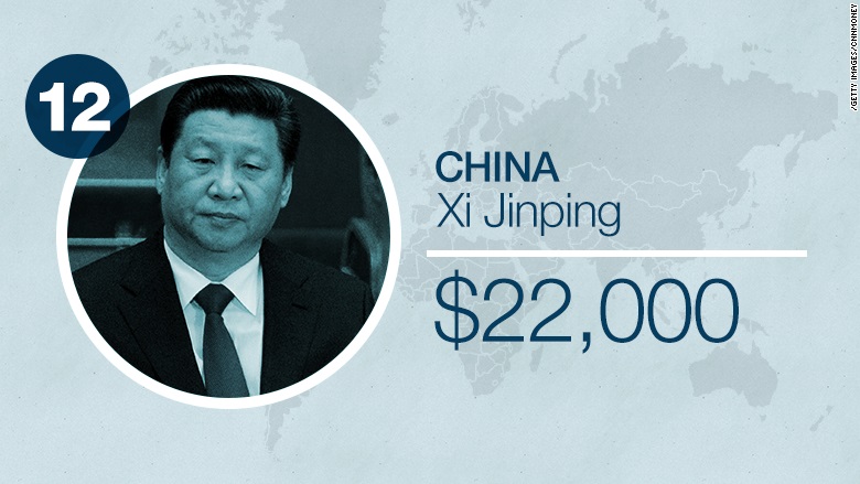 ورغم انه رئيس ثاني أكبر اقتصاد بالعالم، لا يتجاوز الراتب السنوي للرئيس الصيني 22 ألف دولار، وذلك بعد تلقيه 60 في المئة زيادة على الراتب مطلع العام الحالي.