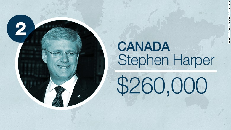 رئيس الوزراء البريطاني ديفيد كاميرون حلّ ثالثا براتب قدره 142,500 جنيه إسترليني (214,782 دولار) في السنة. ويتضمن ذلك راتبه كعضو في البرلمان وقدره 67 ألف جنيه أسترليني.