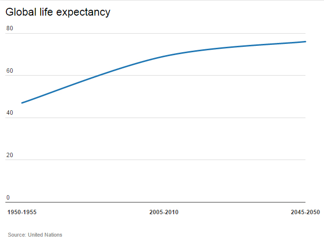 ومن المتوقع أن يعيش البشر لفترة أطول. في حين سيبلغ إجمالي عدد السكان في العالم 9.6 مليار دولار. هذا فيما سوف تتغلب الدول الناشئة حالياً على مجموعة الدول السبع في الناتج المحلي الإجمالي.