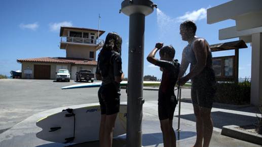 قررت متنزهات كاليفورنيا عدم السماح لرواد الشواطىء بالاغتسال للتخلص من آثار الرمال والملح العالقة بأجسامهم ,في اطار خطة للحفاظ على المياه , مع استمرار موجة الجفاف الحادة التي تعاني منها الولاية منذ نحو عام.
