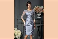 Sheath/Column Scoop 1/2 Sleeves Beading Knee-length Satin Mother Of The Bride Dresses