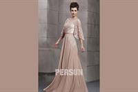 Graceful Scoop Lace Half Sleeves Chiffon Empire A Line Long Evening Dress