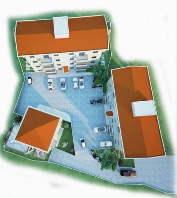 The floor plan is well designed to allow for 3 bedrooms, 2 baths, dining room, kitchen and living (salon) area. Private parking, stone cladding for the building facade, brick roof, elevator, high standards for the electrical installation wiring and accessories (Le Grand) are just a sample.