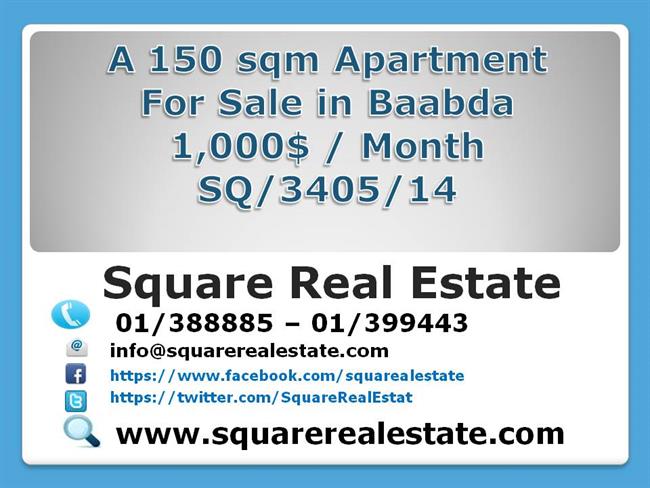 A 150 Sqm Apartment For Rent In Baabda 1000$