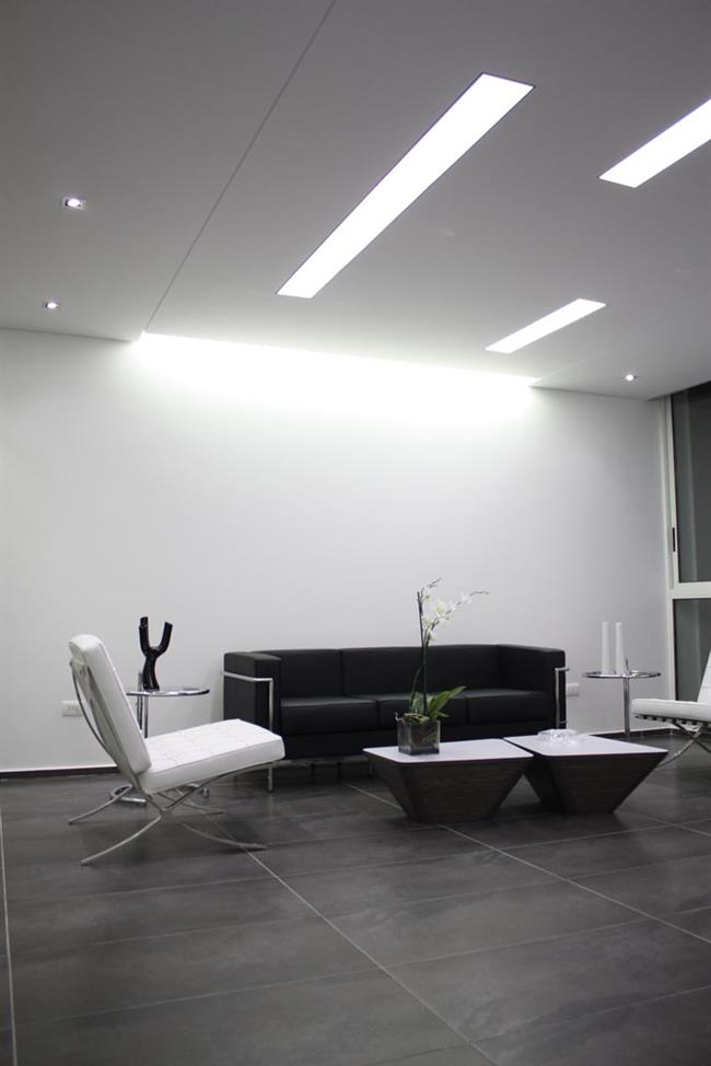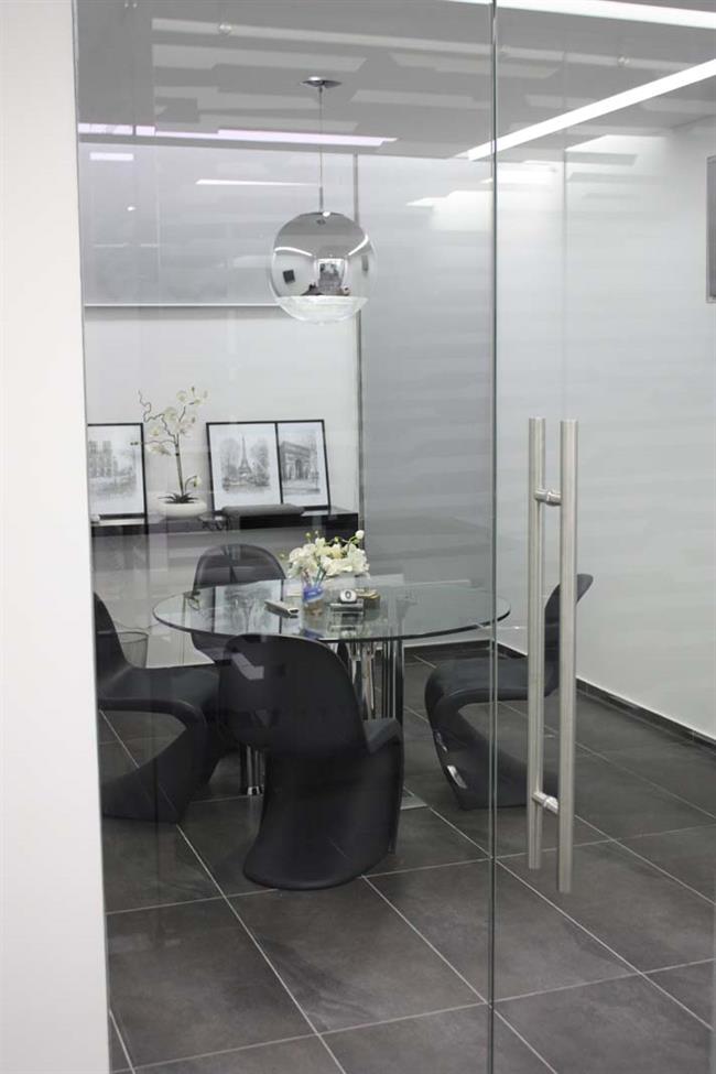 Gypsum false ceiling, Glass partitions for the offices (floor to ceiling system), Indirect light, led spotlights & suspensions