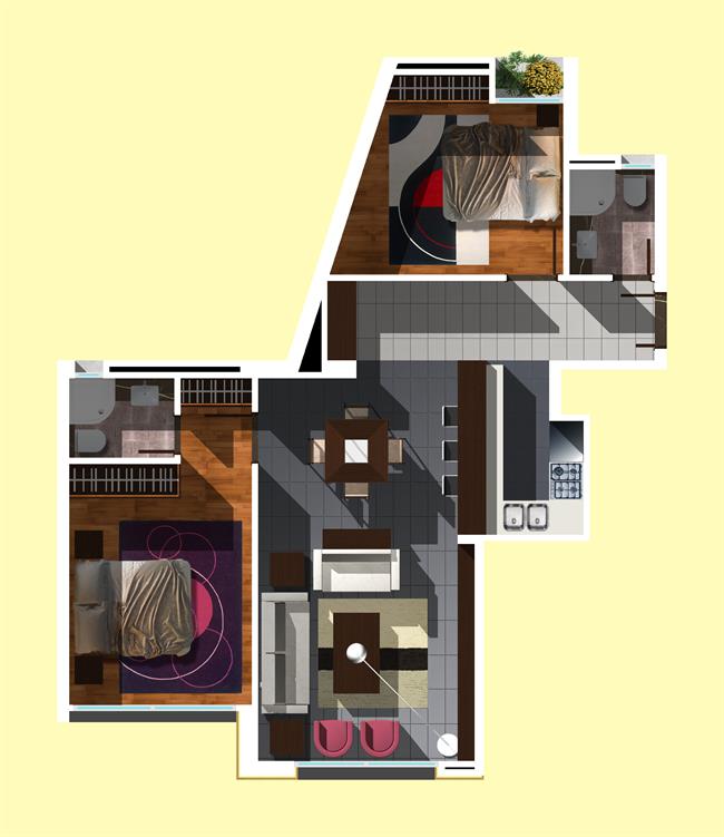 Different apartments’ sizes are available in the Residential Tower: