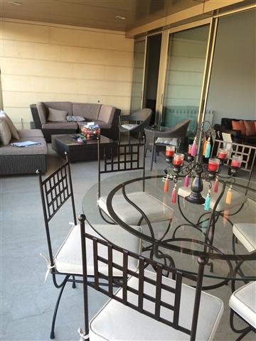 A fully furnished and equiped apartment for rent in a new building. It consists of 3 bedrooms (including 1 master), 4 bathrooms, family room, 2 salons, dining room, cave (underground), maid and laundry room and 2 parking spots (underground). It has many features e.g. 1 apartment per floor, well water, building generator, split a/c,.