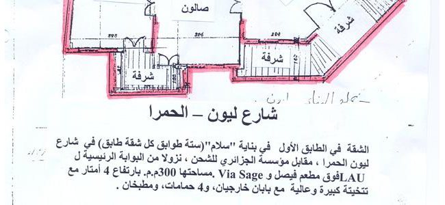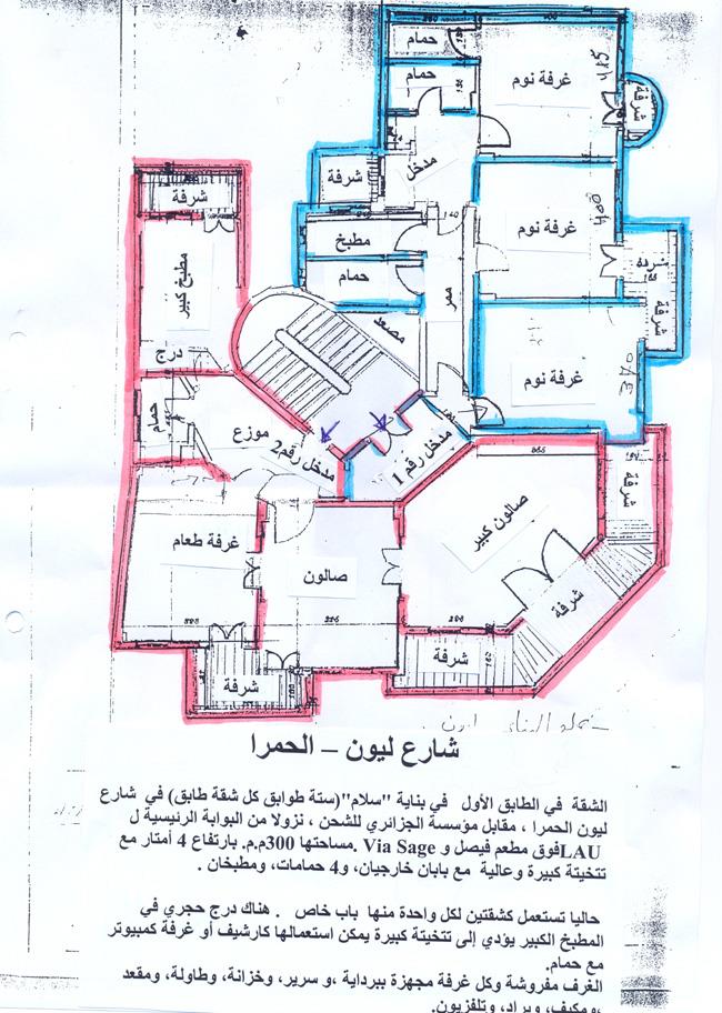 Apartment in Lion st. Hamra area , first floor, registered 240sq.meter which works for both residential and commercial potential buyers could use it as a doctor's clinic , Salon hair dressing , accounting ,or any company . It could be very good for both commercial and residential .