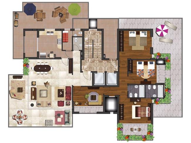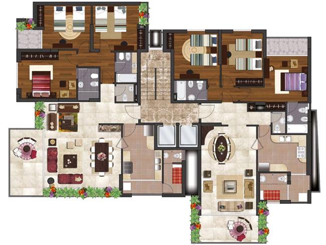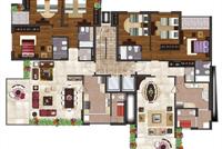 The first 7 floors consist of two apartments A & B . Apt A is around 170 m2 and Apt B is around 159 m2
