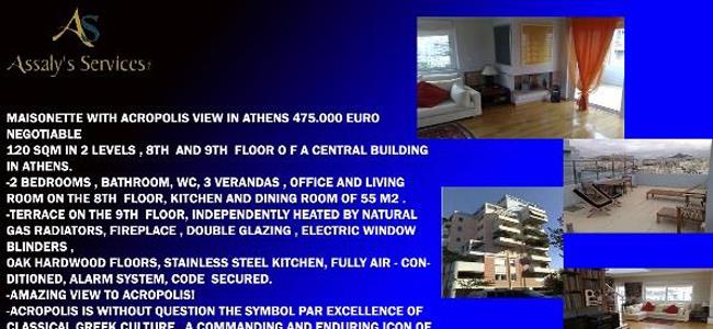 MAISONETTE WITH ACROPOLIS VIEW IN ATHENS 475.000 EURO