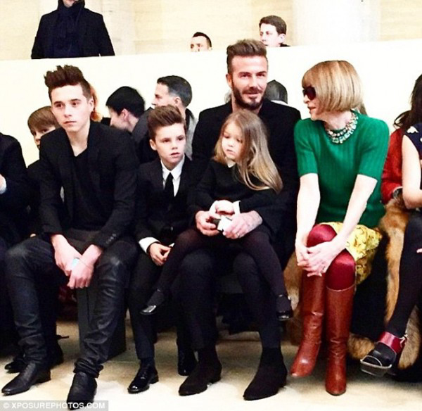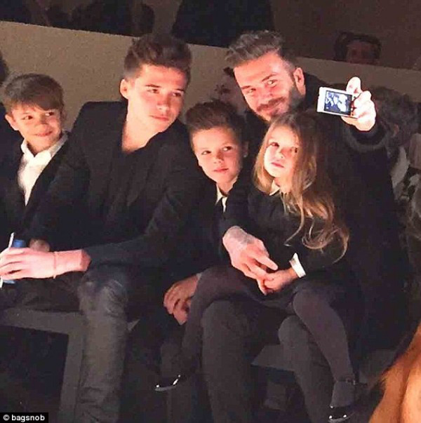 وكان ديفيد برفقة أولادهما بروكلين وروميو وكروز وهاربر.