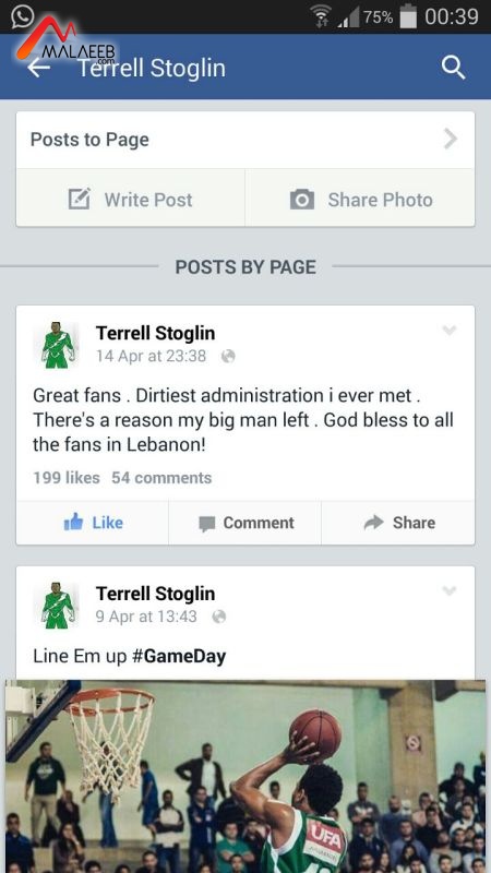رد النجم الاميركي تيريل ستوغلين على قرار نادي الحكمة الاستغناء عنه بجملة معبرة على صفحته على موقع التواصل الاجتماعي "فايسبوك" فضح فيها الكثير من الامور التي تحصل في اروقة النادي الاخضر وقال ستوغلين: " اروع جمهور... واوسخ إدارة قابلتها في حياتي، هناك أسباب ادت إلى هروب "بيغ مان" (جوليان خزوع)، الله يحمي جمهور كرة السلة في لبنان".
