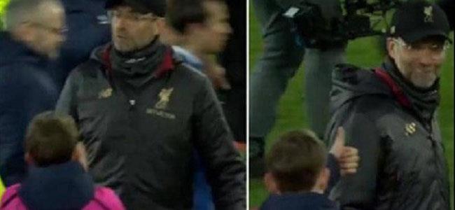 استطاع طفل من جامعي الكرات في استاد "غوديسون بارك" أن يستفز مدرب ليفربول يورغن كلوب، عقب انتهاء مباراة "الريدز" مع مضيفهم إيفرتون بالتعادل السلبي، مما حرم الفريق الأحمر من صدارة الدوري الإنجليزي، والتخلي عنها للمنافس العنيد مانشستر سيتي.
